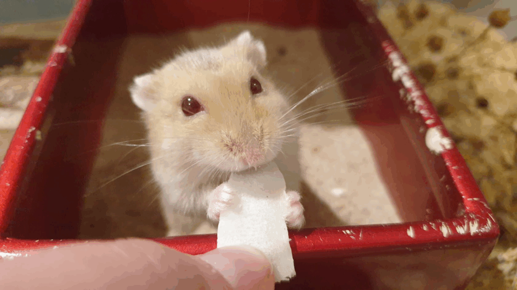 Aries er en rolig hamster som tar alt i sitt tempo. Hun elsker alt nytt ogstresser lite med noe som helst annet tenn å få komme ut og henge litt med deg.